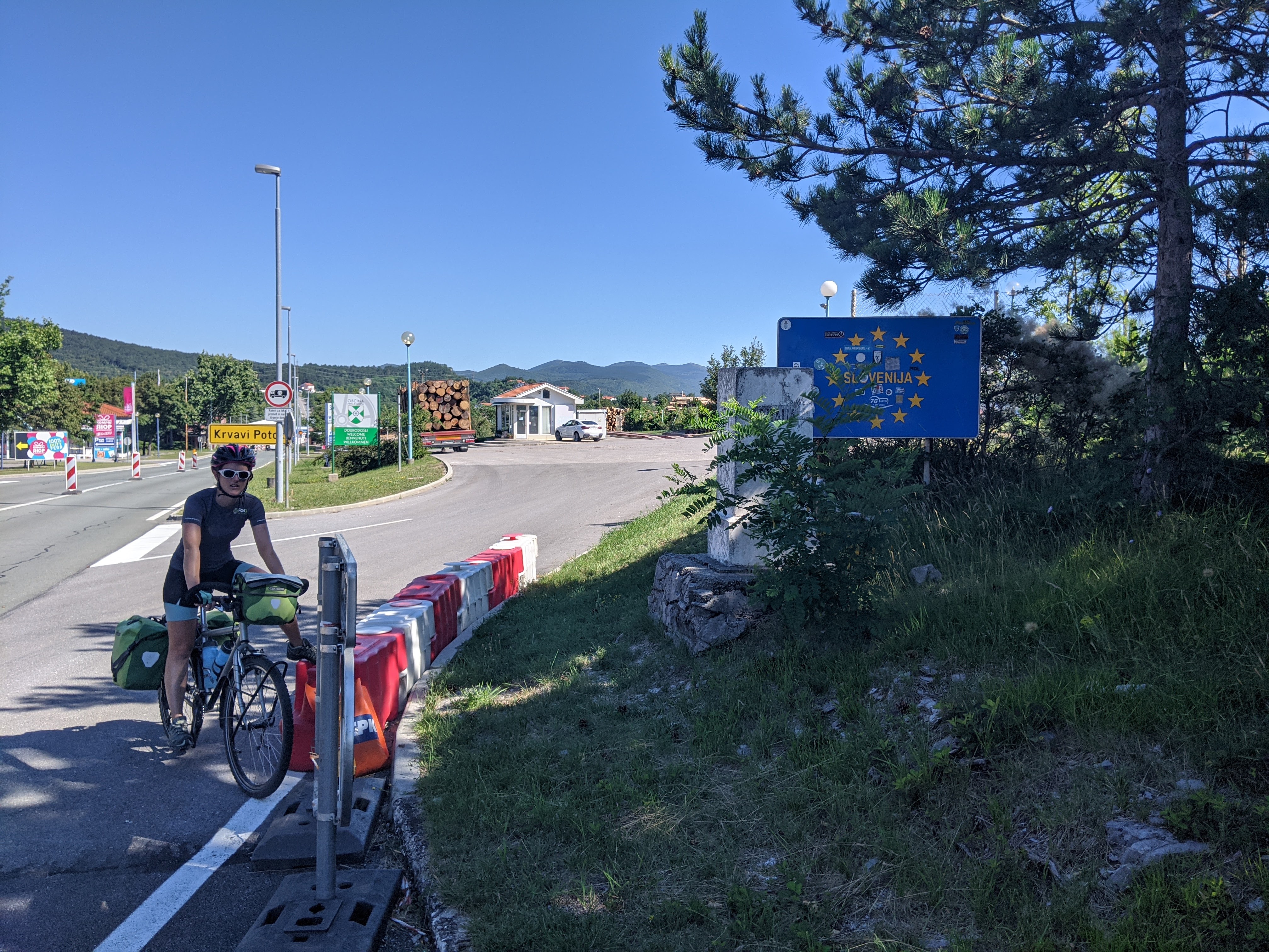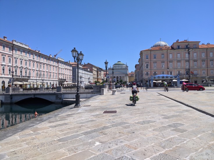 Afin d’éviter une étape dans la circulation, nous décidons de quitter Venise par le train. On prend la direction de Trieste mais des travaux sur la ligne nous obligent à remonter sur nos vélos 30 kilomètres avant le terminus. Nous profitons de nos derniers instants en Italie pour savourer de succulentes lasagnes. En guise de digestion, il nous attend une belle montée sous un soleil de plomb pour sortir de la ville. Nous comprenons rapidement que les prochains jours seront marqués par la chaleur !