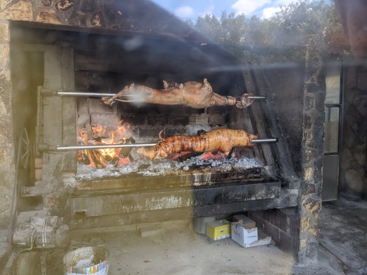 Il n’est pas rare en Croatie de rencontrer sur les bords de route un cochon grillé tournant autour de sa broche. Lorsque l’occasion s’est présentée, nous avons goûté à cette spécialité du coin. Verdict, ca n’égale pas l’asado argentin !
