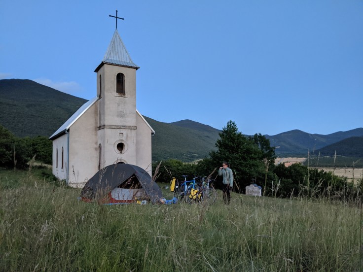 A peine plus au nord, nous roulons sur un axe très peu circulé, et pourtant, nous croisons beaucoup de véhicules de police. Le soir venu, alors que nous avons trouvé un lieu de bivouac non visible depuis la route, une voiture de police vient à notre rencontre. Nous ne sommes pas très rassurés, le camping sauvage est interdit même si assez bien toléré dans les zones non touristiques… Les policiers nous donnent leur accord pour le bivouac mais nous expliquent qu’ils font des rondes en raison des migrants qui tentent de traverser la frontière depuis la Bosnie. La voilà l’explication à cette impressionnante présence policière !