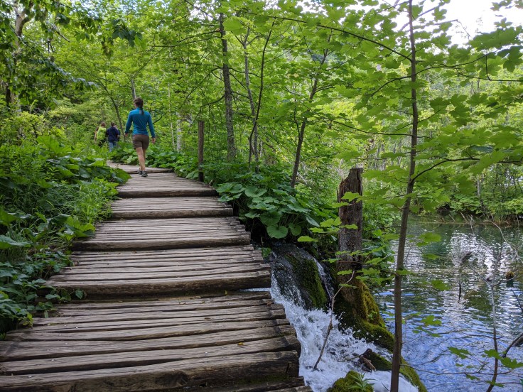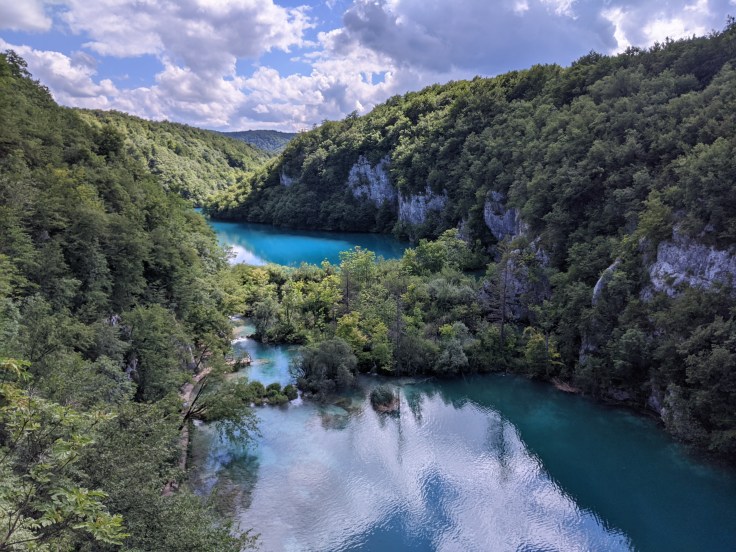Nous faisons étape au parc national de Plitvice, une successsion d’une dizaine de lacs reliés par pas moins de 92 cascades ! Quand la plupart des visiteurs prennent le bus pour rejoindre les lacs supérieurs, nous choisissons un itinéraire de randonnée hors des sentiers battus. Nous prenons de la hauteur mais restons sur notre faim avec peu de points de vue sur les chutes d’eau. Nous rejoignons finalement les pontons en bois qui zigzaguent entre les lacs et les différentes cascades dans une végétation luxuriante. L’eau est incroyablement limpide, c’est magnifique ! En somme, une bien belle journée avant de reprendre la route en direction de la capitale.