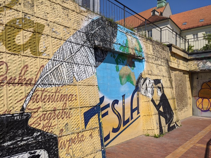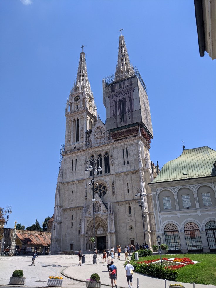 Nous rejoignons Zagreb sans difficulté, avec ses 800 000 habitants, c’est une capitale à taille humaine. Une fois n’est pas coutume, nous avons dégoté un airbnb nous permettant de rejoindre le centre à pied. Nous débutons par une visite guidée en anglais de la vieille ville perchée sur une colline. Bien sympathique, notre jeune guide qui a toujours vécu à Zagreb nous raconte l’histoire de la ville à travers de nombreuses anecdotes rendant la visite passionnante. Mais après plus de deux heures, difficile pour Fabien de rester concentré en plein cagnard et dans la langue de Shakespeare.