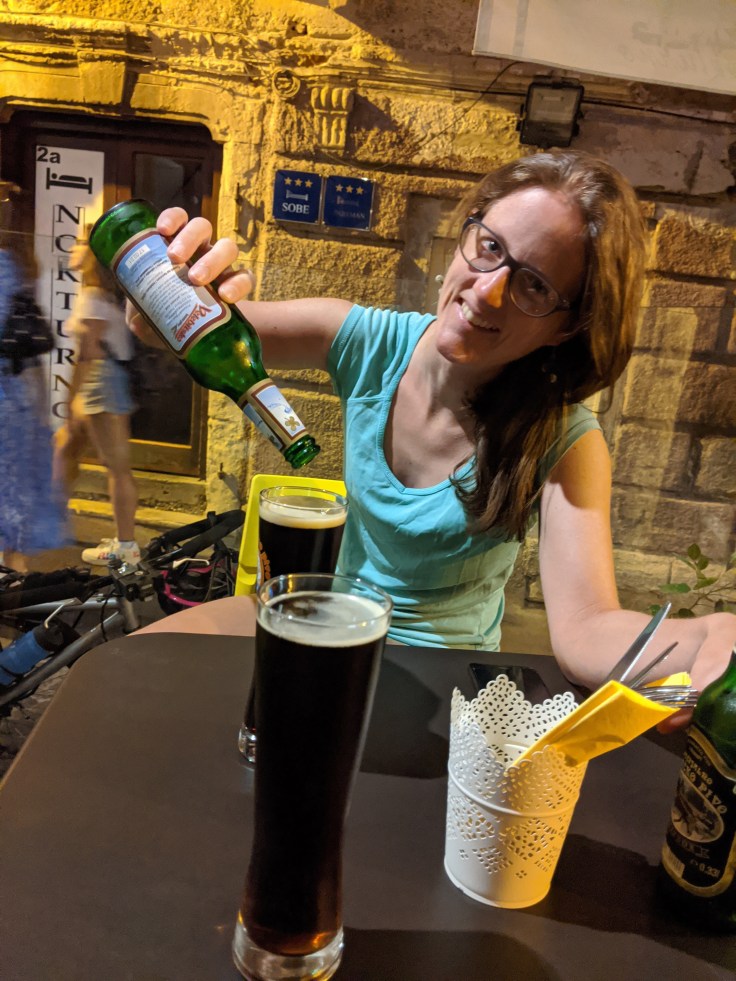 Nous atteignons rapidement la frontière slovène et profitons de la zone duty-free pour refaire nos réserves de chocolats que nous devrons maintenant déguster à la petite cuillère ! Nous ferons seulement quelques kilomètres dans ce pays sur une route qui serpente entre champs et forêts. Le soir venu, nous faisons une halte dans une maison pour faire le plein d’eau. En plus de remplir nos bidons, le propriétaire a tenu à nous offrir de l’eau de vie. Assoiffée, Marine manque de s’étouffer en prenant une belle gorgée. Il semble que l’alcool ait une place importante ici, la bière est d’ailleurs souvent moins chère que l’eau.